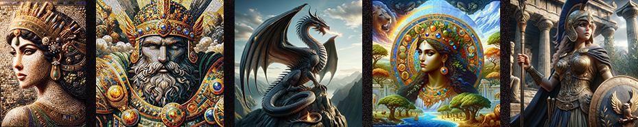 Immerse yourself in a realm where the mystic past breathes life into the present—where gods and goddesses tread the boundless heavens, dragons soar across the twilight of forgotten worlds, and mythological beasts roam the landscapes of our imagination. This is not just a gallery; it's a journey back in time to the cradles of civilization—the fertile crescent of Mesopotamia, the eternal lands of Egypt, the rugged coasts of the Norse, and beyond.